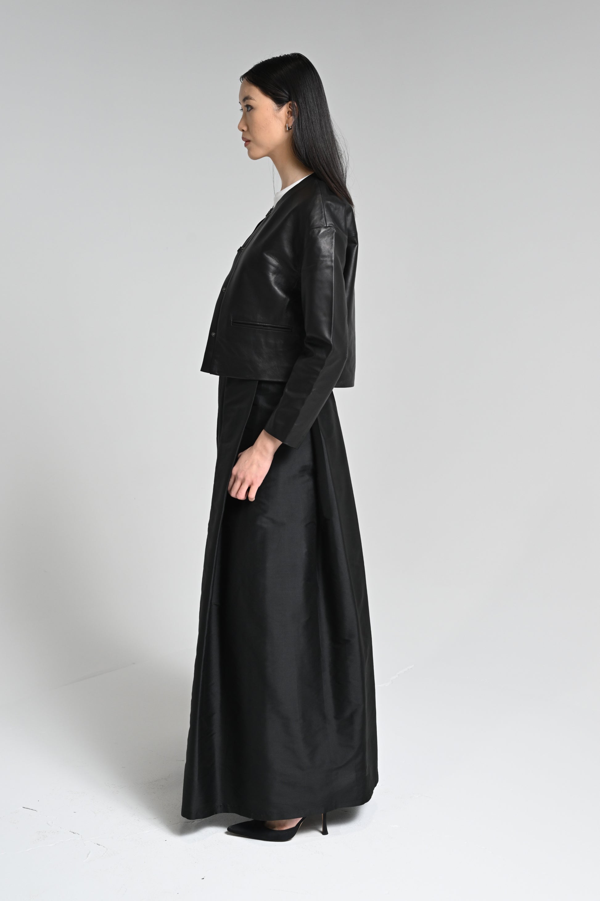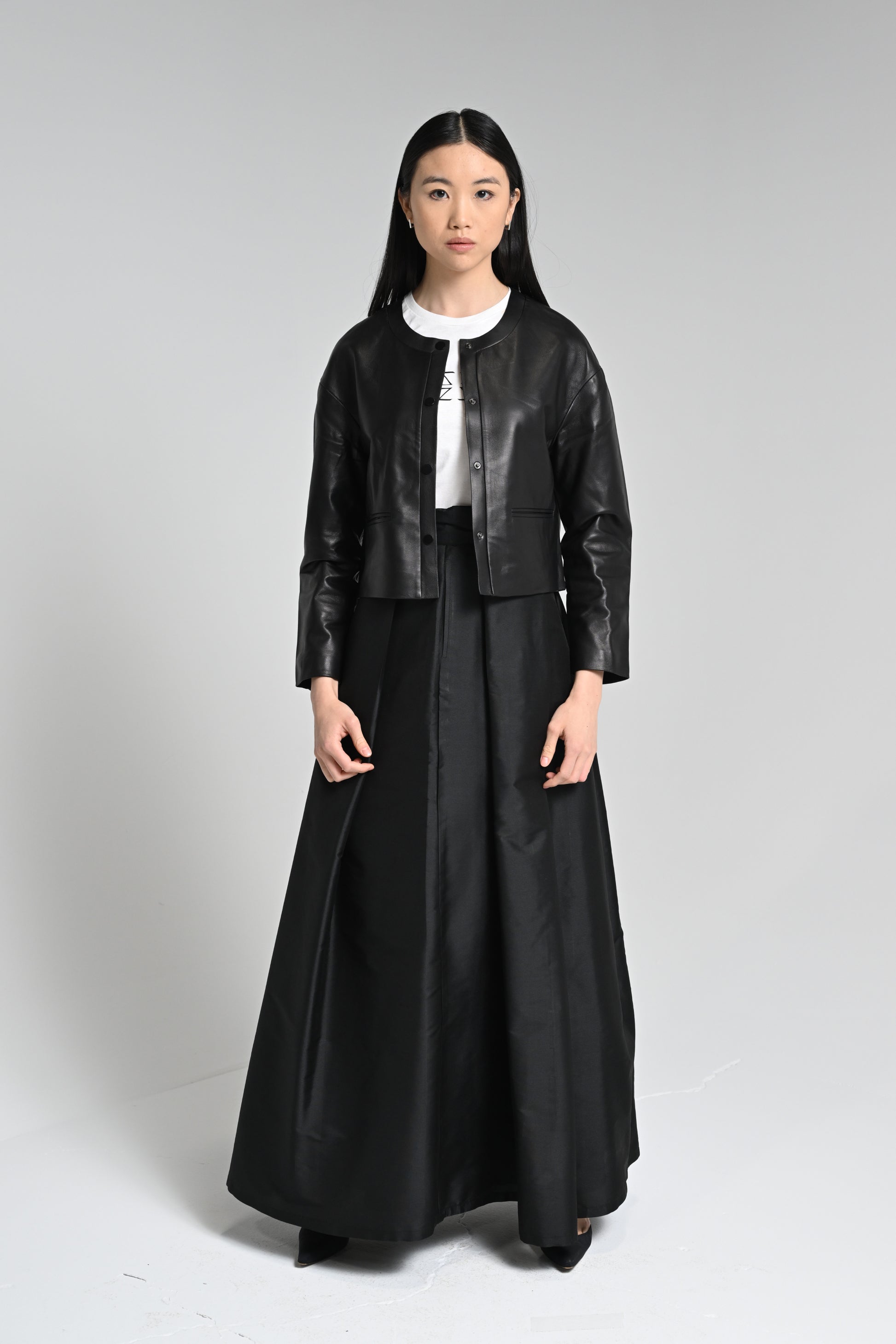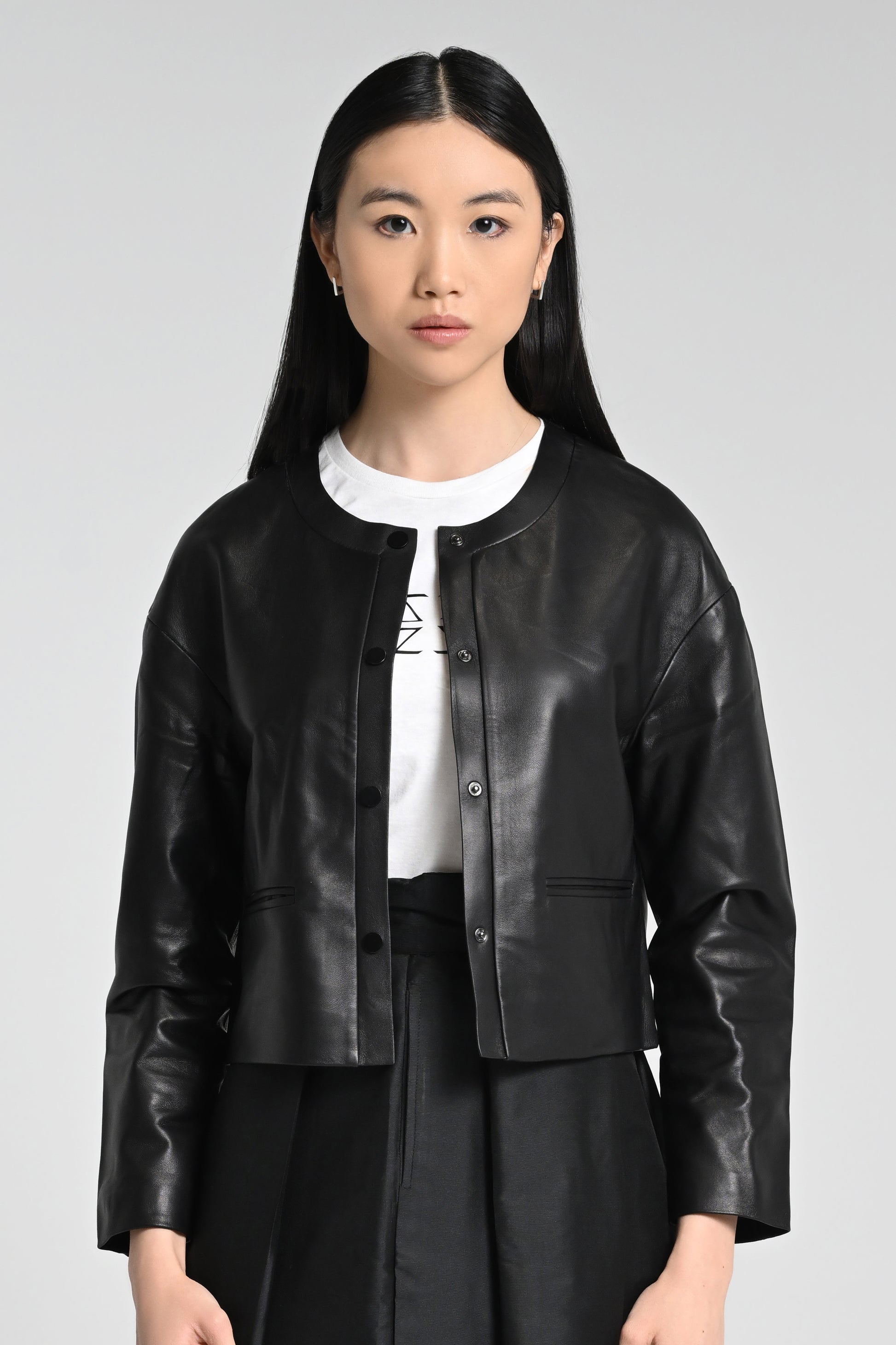 The Mimi is a Belzette signature jacket and an anchor piece in anyone's wardrobe. The Mimi jacket is immensely versatile and the jacket can be styled in a myriad of ways. The jacket features the Belzette lightweight, soft, buttery lambskin leather, a round neck, fastening with concealed press studs and subtle welted pockets.
